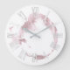 Pink White Rose Blush Gray Roman Numbers Große Wanduhr