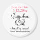Save the Date in Pastellrosa vor weißem Hintergrund geschrieben. Die Namen von Braut und Bräutigam in der schwarzen Schrift. Entwürfe von TamiraZDesign.