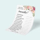 Rosa Blume Wie gut kennen Sie das Mama to be Baby Shower Game? Englisch und Spanisch Spiele in der Version inbegriffen (vorne und hinten). Ändern Sie die Mama in Name und Fragen in die Vorlage für Englisch und Spanisch. Für weitere Anpassungen (andere Formulierungen, Schriftart, Stil des Schriftartes), klicken Sie auf Personalisieren, scrollen Sie nach unten und klicken Sie auf den Link "Klicken Sie auf, um weiter anzupassen". WIE MAN SPIELT: Die Gäste antworten auf Fragen über die Mutter zu sein, nachdem sie alle ihre Antworten ausgefüllt hat, die Mutter-to-be beantwortet alle Fragen, und die Gäste werden auf den rechten Kästchen Karo, die sie richtig erraten und schreiben die Summe der richtigen Antworten am Ende. Die Person mit den korrektesten Antworten gewinnt.