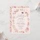 Whimsical Graduation Party Einladungskarte mit handgezeichneter Darstellung der Wiese-Wildblumen in rosa Farben.