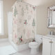 A seamless pattern shower curtain featuring delicate winter botanicals and softly falling snowflakes. This elegant design showcases holly leaves and pine tree in muted greens, bright red berries, pale pink branches, and snowflakes on a dusty pink background. The gentle watercolor texture and natural paper feel create a refined, vintage-inspired aesthetic. Ideal for those who love modern feminine Christmas designs or nature-inspired winter art. A thoughtful gift idea for crafters, designers, and holiday decor lovers.