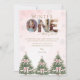 Celebrate your little one’s milestone with this Pink Winter Onederland Girl 1st Birthday Photo Thank You Card featuring snowflakes, festive Christmas trees with pink bows, and three photo spots inside the word “ONE.” Easily personalize all text and photos for a magical winter birthday celebration.