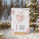 Beautiful pink winter-themed table number card featuring a cozy hot cocoa mug with whipped cream, candy cane, gift box, snowflakes, festive lights, and soft pastel holiday greenery. Perfect for organizing seating at a winter baby shower, “Baby It’s Cold Outside” theme, Christmas baby shower, or pink winter celebration. Editable and printable table card with guest names included.