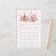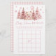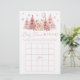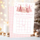 Ein klassisches Bingo-Spiel, das für eine kleine Mädchendusche konzipiert ist und mit einem hübschen Teddybär mit einem niedlichen rosa Bogen geschmückt ist, der einen rosa Ballon hält, umgeben von Winterkiefern und Schneeflocken. Gönnen Sie Ihren Gästen dieses wunderbare Spiel, das sich perfekt eignet, um Ihre Winterfeier mit viel Spaß und Spannung zu gestalten und gleichzeitig wertvolle Erinnerungen zu schaffen.