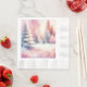 Hübsch rosa Winterwunderland Weihnachts-Party-Papierservietten. Ein rosafarbener Wald mit schneebedeckten Kiefern.