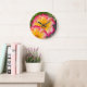 Pink Yellow Rose Große Wanduhr