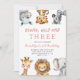 Pink Young Wild and Three Safari Birthday Party Einladung