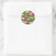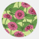 Pink Zinnias auf hellgrün Runder Aufkleber