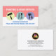 Ein pastellrosa und weiß lackierter Cover mit drei Kreisen, die Malwerkzeuge enthalten. Der erste grüne Kreis ist eine Pinsel, der zweite ist eine Leiter und ein Farbschrott und schließlich hat der lila Kreis die Pinsel. Oben befindet sich der Firmenname mit den Kontaktdaten in der Nähe der Kartenbasis. Über dem Blatt, in einem weißen Deckel, oben ist ein goldenes "Zuhause mit Farbton-Ventilator" Logo, das Sie verwenden können. Danach folgen Ihr Name, die Kontaktdaten und ein Slogan, um Ihre Dienste bekannt zu machen. Ein kreatives Design für die Malerei.