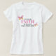 Tragen Sie Ihren Glauben mit diesem inspirierenden T - Shirt, der zwei rosa und orangefarbene Schmetterlinge und die christliche Botschaft "Lass, dass dein Glaube größer ist als deine Angst." hat.