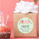 Hochzeitsmonogramm bevorzugt Tagkleber in rot-rosa Aquarellfarben mit grünem Hintergrund. Eine großartige Art, Gastgeschenke Hochzeiten zu dekorieren.
