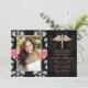 Fügen Sie Ihr Foto- oder Lieblingsbild diesen schönen Schwarzweiss-BlumendamastkrankenpflegeschulAbschlussmitteilungen und -einladungen mit einem Goldcaduceus und einem Bandblickdruckentwurf des heißen Rosas genähten hinzu. Fertigen Sie ihn besonders an, um zu sagen, was auch immer Sie auf dem hinteren und das vorder von der Krankenschwester-Abschlussmitteilung und -einladung wollen. Grafik © Chrissy H. Studios, LLC. Alle Rechte vorbehalten.