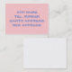 Stilvolle, hellrosa Visitenkarte, um sich selbst, Ihr Unternehmen oder Ihre Veranstaltung bekannt zu machen. Klicken Sie auf die Schaltfläche Anpassen, um die Textposition sowie die Farbe und den Schriftart der Buchstaben zu ändern, oder entfernen Sie die Schrift, um das elegante Design auf der Vorderseite verlassen und Ihre Daten auf der Rückseite der Visitenkarte zu speichern.