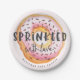 Mit Liebe gesprenkelt, Baby Dusche Party Papier Teller. Aquarellbilder und handgeschriebener Text. Teil einer Sammlung.