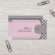 Rosa Leder in heller Rose und Muster-Accessoires Visitenkartenvorlage mit einem blassrosa Band mit Nähten und einem grauen mit einem Knopf im Lederstil - nicht echtes Leder, nur ein PRINTED-Bild und geometrisches Muster in grau und blasser Rose pink. Dieses moderne und dennoch mit einem Retro-Flair-Visitenkarten-Template ist vollständig anpassbar.