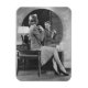 Junge Frau, die künstliche Blume an die Jacke vor dem Spiegel klopft (B&W) | George Marks | AssetID: 72131200