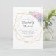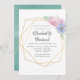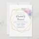 Chic pastellfarben florale Hochzeitsessen Probe Einladung mit goldenem geometrischem Rahmen.