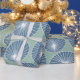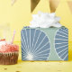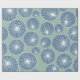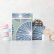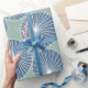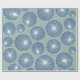 Dieses Verpackungspapier hat ein modernes Design staubblauer Kreise mit weißen Sternexplosionen auf einem Feld von Meeresgrün.