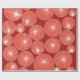 Dieses Verpackungspapier hat ein modernes Design von roten Kreisen mit weißen Sternexplosionen, alle auf einem Ziegelfeld.
