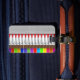 Bild der Pinsel in einem ledernen Beutel, malende Streifen der Farbe
