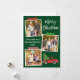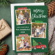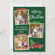 Modernes Pinselskript Frohe Weihnachten 3 Foto Collage Urlaubskarte beinhaltet Handwerk Tape und Vintager Wasserfarbenroter LKW mit Weihnachtsbaum. Grüner Hintergrund des Waldes.