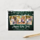 Rustikales Grünes Holz Pinselschrift 3 Foto Familie Glückliches Neues Jahr Postkarte mit String Lights