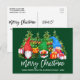 Modern Brush Script Frohe Weihnachten Farbige Fun Wasserfarbe Gnomes Postcard mit Pine Trees. Familienname und Jahr - grün Hintergrund und Stringleuchten