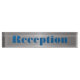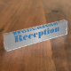 Metallisch aussehende Schreibtischtafel aus gebürstetem Aluminium. Der fett blaue Text ist bereit, um alles zu personalisieren, was Sie gewollt haben. Ideal für jedes Geschäft.