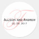 Einfache, elegante, rosa und weiße Script Monogram Gastgeschenk Hochzeit Sticker oder Save the Date Umschlag Aufkleber. Von Elke Clarke©2009. Passen Sie Ihren Familiennamen an, die Namen der Braut und des Bräutigams sowie das Hochzeitstermin. Verwenden Sie zum Siegel Ihrer Hochzeitseinladung Umschläge oder fügen Sie zu Ihren Gastgeschenke Hochzeiten. Benutzen Sie das "Anpassen"-Menü, um den Abstand zu ändern, wenn Sie den Buchstaben ändern.