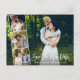Modernes Pinselskript Rette Neudatum Hochzeit verschoben Neuen Hochzeitstag Paar 4 FotoCollage Postkarte