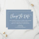 Modernes Pinselskript ändert das Datum Hochzeit verschoben Karte trostlos blau