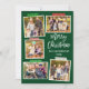 Moderne Pinselschrift Frohe Weihnachten 5 FotoCollage mit Craft Tape Holiday Card. Grüner Hintergrund des Waldes.