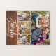 Modernes Pinselskript Familie 4 Foto Puzzle mit rustikalem Holzdruck