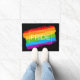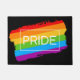 Dieses Kunstwerk hat einen bunten Regenbogen mit dem Wort Pride.