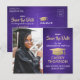 Teilen Sie die freudige Nachricht von einer bevorstehenden Abschlussfeier mit maßgeschneiderten Foto lila und Gold Save the Date Postkarten Einladungen. Das Bild und die Formulierung auf dieser Vorlage sind einfach zu personalisieren und die Farben können mit dem Zazzle Design Tool geändert werden. Passen Sie es mit dem Namen, dem Unterrichtsjahr und anderen Ankündigungsdetails Ihrer Wahl an. Das Design umfasst ein Imitat mit gebürstetem metallischem Hintergrund, eine Mütze aus Imitat-Folie, eine elegante moderne Kalligraphie, eine klassische Vintage Typografie und ein beliebtes Foto, wie z.B. ein Seniorenbild oder ein Bild aus der Anlaufzeremonie. Bitte beachten Sie, dass Gold farblich gedruckt ist, nicht metallische Folie. Diese stilvollen Abschluss-Karten sind eine elegante Möglichkeit, um einen besonderen Tag mit Freunden und Familie zu teilen. Herzlichen Glückwunsch an den Absolventen!