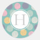 Pinselstrich pastellfarben polka dot monogramm runder aufkleber