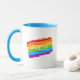 Dieses Kunstwerk hat einen bunten Regenbogen mit dem Wort Pride.