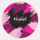 Pinselstriche in heißen rosa Farbtönen mit Monogra Runder Aufkleber