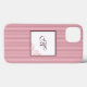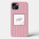 Elegantes Stripe und englische Rose Spitzen-Muster in Rose Rosa mit Skript-Schriftart Monogramm in burgundy Staub, Single erste monogramm iPhone Case. Personalisieren Sie mit Ihrem eigenen Initial. Entworfen, um unsere Vintage englische Rose Collection zu entsprechen.