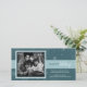 The contemporary design on this foto card is eigenate for any holiday whether for Christmas, Hanukkah or Kwanzaa. The slate blue background with graphic snowflakes and swirls gives a modern flair to your hand holiday message spelled out on a light blue ribbon. Customize with your own message and photograph. Schluckbar in alternate colors with matching products.