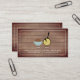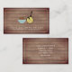 Eine Visitenkarte für die Lebensmittelindustrie, die eine Illustration vor einer Schüssel mit Bohnen und einem Geschirr aus Maisbrot mit Gesichtern und Beinen zeigt. Hintergrund ist Holz. Personalisieren Sie den Text vorne und hinten.