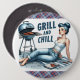 Pinup Lady Grill & Chill Pinback Buttons Humorvoll