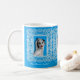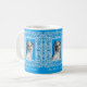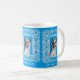 Lace Frame Retro Pinup Girl Gemusterte Tasse mit originalen Pinup-Kunstwerken ©"Miss Cherrie Au Lait - Bath". Blauer Hintergrund.