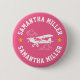This bold, fun button features a charming white line art of a Piper Cub airplane and clouds image personalized with your name and 2 gold stars on a lush pink background.