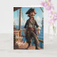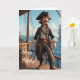 Diese lustige Geburtstagskarte beinhaltet einen auf dem Deck eines Piratenschiffs stehenden Piraten.