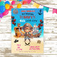 Niedliche Kinder rauben die Einladung zum Geburtstag. Das hat niedliche Piratenklingelkunst wie ein Schiff , Ballons, Piratenjunge und Papagei.