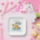 Machen Sie die Geburtstagsparty Ihres Kindes mit diesen bezaubernden Tellern ganz besonders. Die Einrichtung besteht aus einem handbemalten Aquarellbild einer Schatzinsel mit einem Piratenpapagei, der auf einer Palme steht, einer Schatztruhe und einer Piratenflagge mit Schädel und Kreuzknochen. Die Teller sind eine lebendige Mischung aus Blau, Gelb, Braun und Grün. Die Teller sind nicht nur praktisch, sondern bringen dem Party auch Spaß und Abenteuerlust.