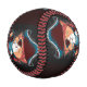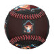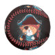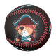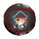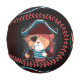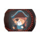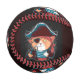 Ein Cartoon Piratencharakter auf einem Baseball, der sein spielerisches Design zeigt.
