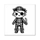 Eine super niedliche Schwarz-Weiß-Illustration eines bezaubernden Piraten in einem Skelettkostüm. Dieser charmante Charakter trägt einen Piratenhut mit einem Schädel und Kreuzknochen, eine Augenklappe und hält eine Hausblase. Ideal, um jedem Projekt eine Touch Spaß und unheimliche Abenteuer hinzuzufügen.