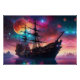 Der farbenfrohe Nebulas am Himmel ist ein hübscher Hintergrund für dieses Pirate-Raumschiff, das auf einem anderen Planeten mit vielen Monden AI Art von minx267 landet